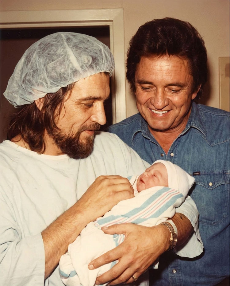 The news of his son’s birth arrived through a backstage payphone at 2:47 in the morning. Waylon lit a cigarette, stood in the blue smoke of the hallway, and let the silence settle before he said a word.